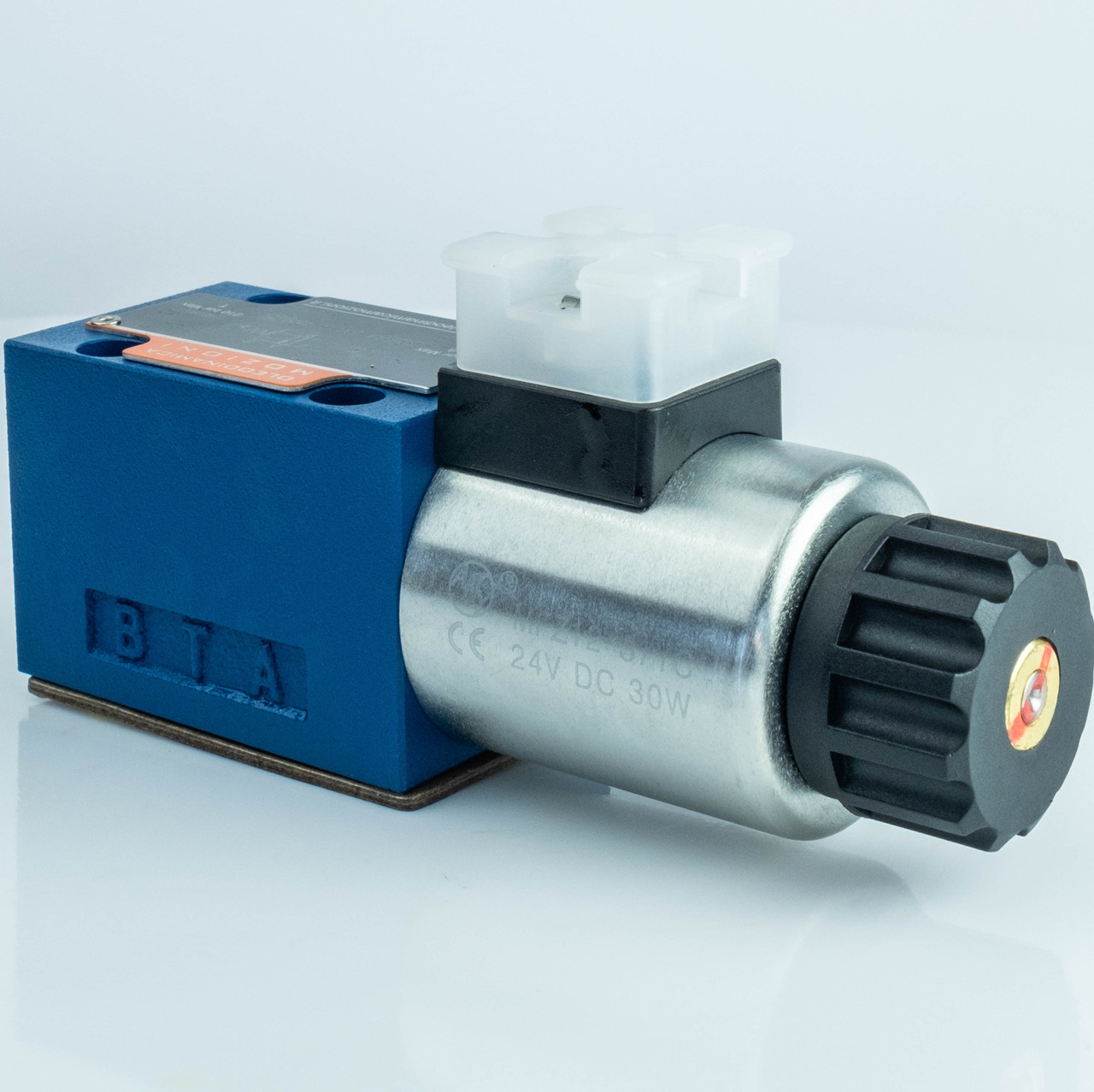 4WE6D-6XCW110RN9Z5L — золотниковий гідророзподільник з електромагнітним керуванням, одномагнітний 4-х лінійний плиткового монтажу, який використовується для запуску, зупинки та напряму потоку. Такий тип розподільника широко застосовуються у промисловій гідравліці для контролю систем та механізмів за допомогою електропульта. Управління здійснюється за допомогою електромагніту, який регулюється відповідно до напруги в системі. У цьому пристрої встановлено електромагніт на 110 В із випрямлячем. Розподільник із пружинним поверненням, без дросельного каналу, має аврійну кнопку та квадратний роз'єм зі світлодіодом. Працює за схемою D. Корпус литий оксидований, ущільнення NBR.
