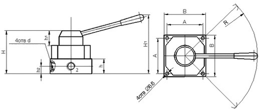 | d | A | B | H | H1 | h | h1 | h2 | R |